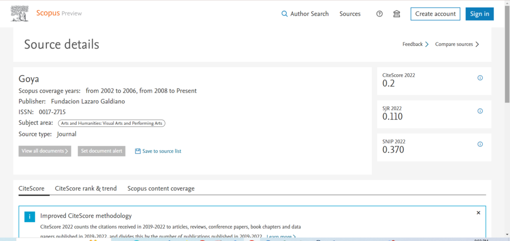 Goya is indexed in Google Scholar, Scopus, ResearchGate, Scribd and many more.